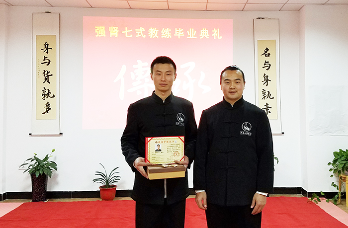 逸仙老师为马许华颁发强肾七式教练毕业证书