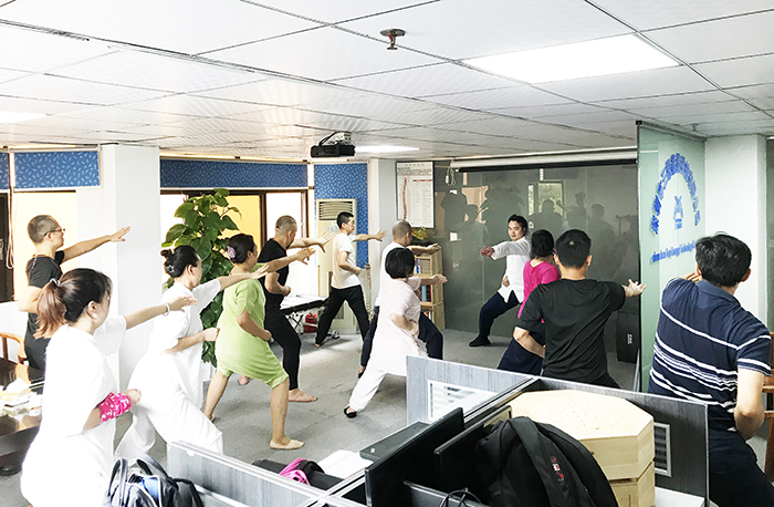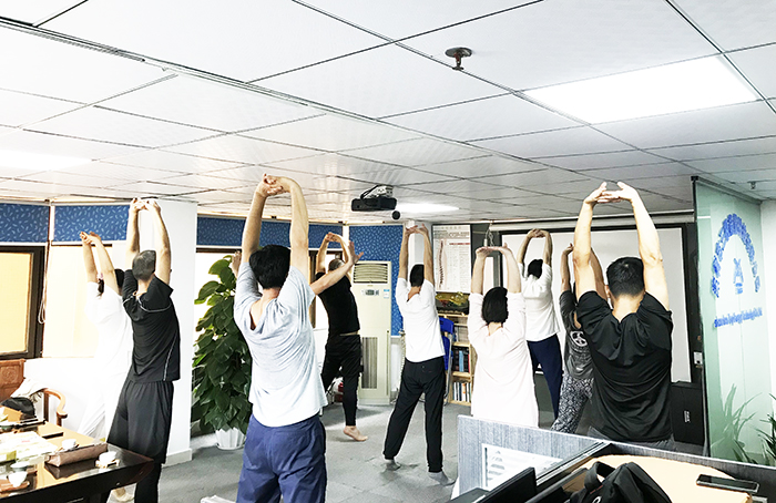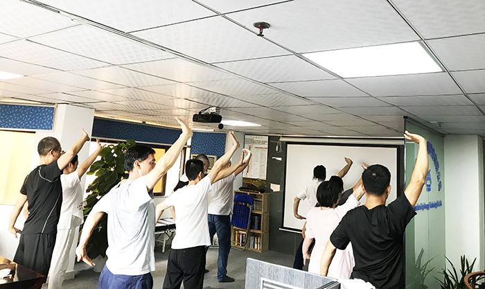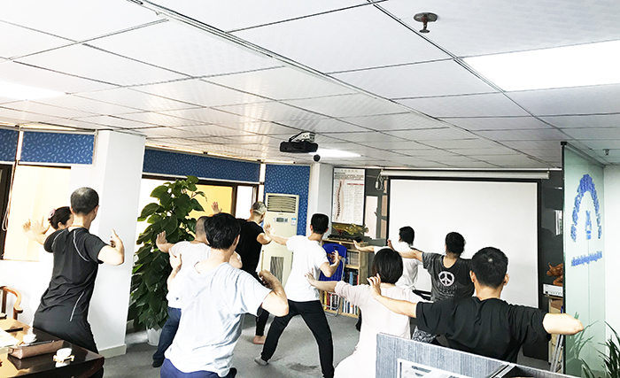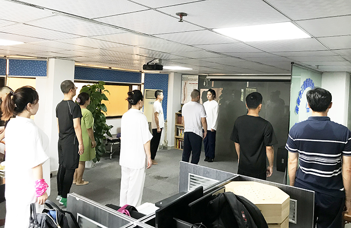 2020年8月2日,逸仙老师受邀在深圳三极能量公司举办的养生沙龙传授八段锦,八段锦为我国的四大健身气功之一,因其简单易学、功效显著、姿势优美深受民众的喜爱,特别是今年的疫情期间,无论是在隔离病房的医患,还是医院的全体员工,都有练习八段锦的身影,武汉卫健委更是推荐八段锦为居家抗疫的首要运动。深圳三极能量是一家从事家用艾灸灸具、艾柱研发、生产、销售于一体的养生品牌。