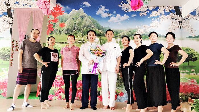 2020年8月23日,逸仙老师受邀在广东佛山沁燃瑜伽馆举办的养生沙龙,为部分会员传授健身气功八段锦。