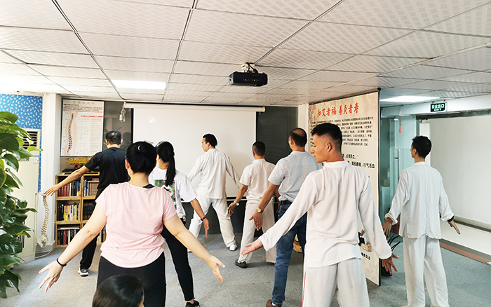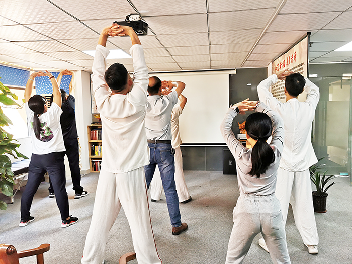 2020年10月11日,逸仙老师第六次受邀在深圳三极能量公司举办的养生沙龙传授健身气功八段锦。