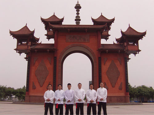 四川学员张先生(左二)在彭祖山面授后和济肾堂教练团合影