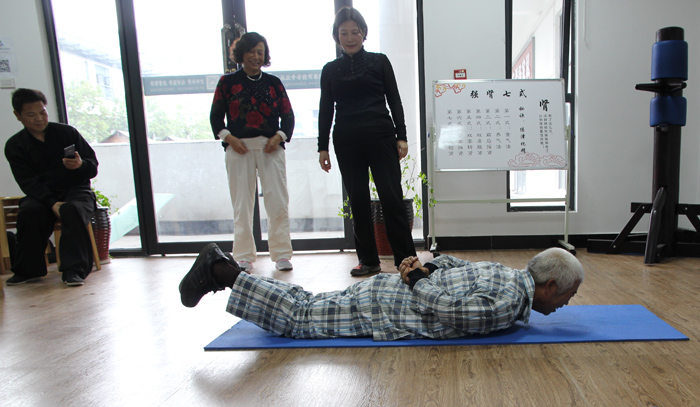 孝顺的女儿(杨女士)带着父母参加了我们上一期(第五期)的集训班,父亲已经70高龄,因为中风偏瘫每次走路都需要拐杖。这一次又带着父母过来参加复训,父亲走路的时候已经可以不需要拐杖了,肢体活动能力大幅度提升(上一期连正反翘肾尝试都没尝试,这一期已经可以做基本动作了),夜尿频多的症状减少了。母亲反馈因为风湿关节炎导致的全身疼痛减轻了许多,身体变得轻松了、舒服了,阿姨走路虎虎生风,本期会员有目共睹。