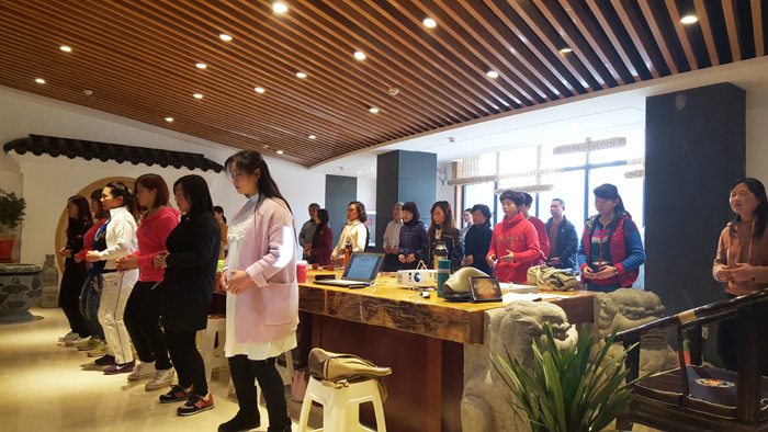女德们开始练习强肾七式第一式食气法,增加体内氧气