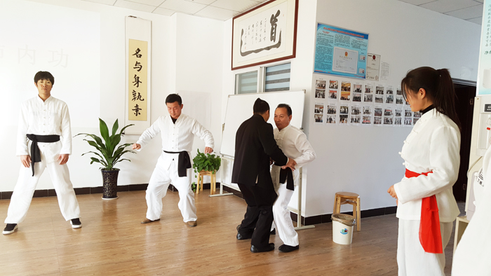 因为要练丹田内气,所以练习的时候都扎上了腰带