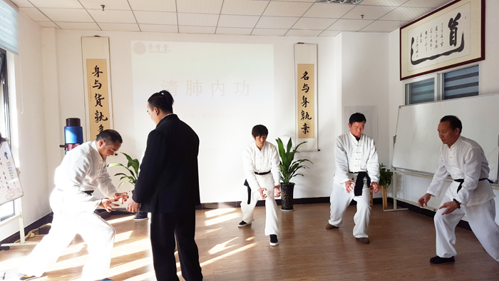 2016年11月12日,上午为老会员们复习完强肾七式之后,下午逸仙老师为会员们传授了清肺内功。十多年来,逸仙老师遍访明师,学过很多种功法,有的功法因为功效不理想,或者是有副作用,或者是耗时太长,或是练习不方便,练了一段时间之后就不练了,而这套清肺内功逸仙老师从19岁学武时开始,十多年来一直勤练不断,深受其益。