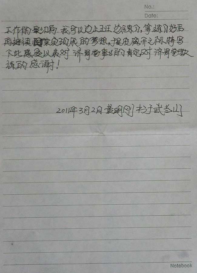 今年过完春节正月十八便从家里出发到成都呆了几天于2011年2月26日赶上了去武当山的列车,当达到后在济肾堂教练细心的安排妥当后,便开始了体验式的学习,因为济肾堂承诺先体验学习,让自己先感觉体验后再决定签订协议,于是在教练的细心指导下便开始了体验学习,当练习独特的强肾翘的时候,感觉两边的肾有种从没有过的酸胀和充实的感觉,一早上的练习让我感觉到身体绷得实实的,回到卧室休息的时候,我就在想因为我们平时都没有刻意的去锻炼过自己的肾,所以才容易得病,刚才锻炼的那种充实感让我感觉还不错,反正都来了既然有效果了,那就继续学习吧。