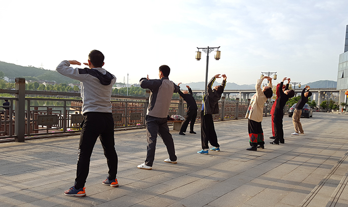 第二天逸仙老师带领大家晨练强肾七式
