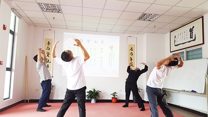 逸仙老师指导会员练习伸筋拔骨