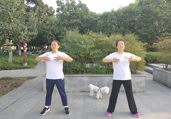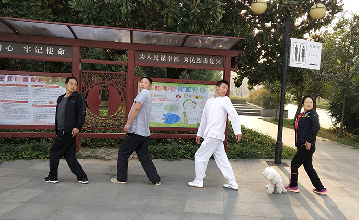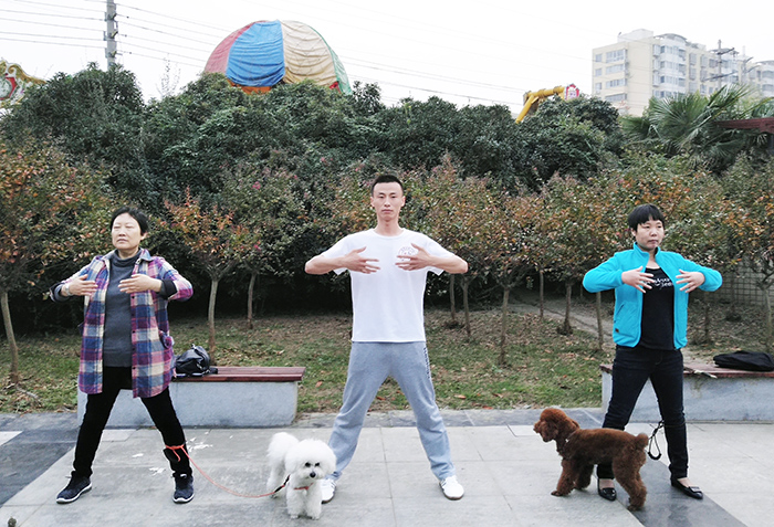 照片中的会员全部来自河南许昌禹州,他们的教练是河南许昌的马许华教练,马许华教练是武当山济肾堂创始人、强肾七式创编人逸仙老师的传人弟子,马许华教练学成回到家乡禹州之后,就有人不断的跟他学习强肾七式,马许华教练教会他们功法动作之后,并经常的带着他们练习,给他们复习、校正规范动作。